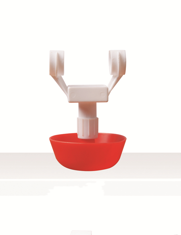 JM-49 chicken automatic drinking cup, hanging cup, nipple cup, drinker cup 1. Size: H120*W75 mm, 2. Unit Weight 27g/set, 3. Used on φ25mm water pipe with JM-15 for day old chicks 4. Material: PP, 5. Packing qty: 500 pcs/carton, 6. Carton size L48*W58*H70cm.